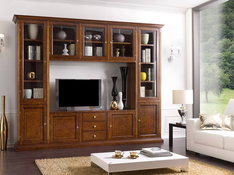 Parete soggiorno con vetri molati