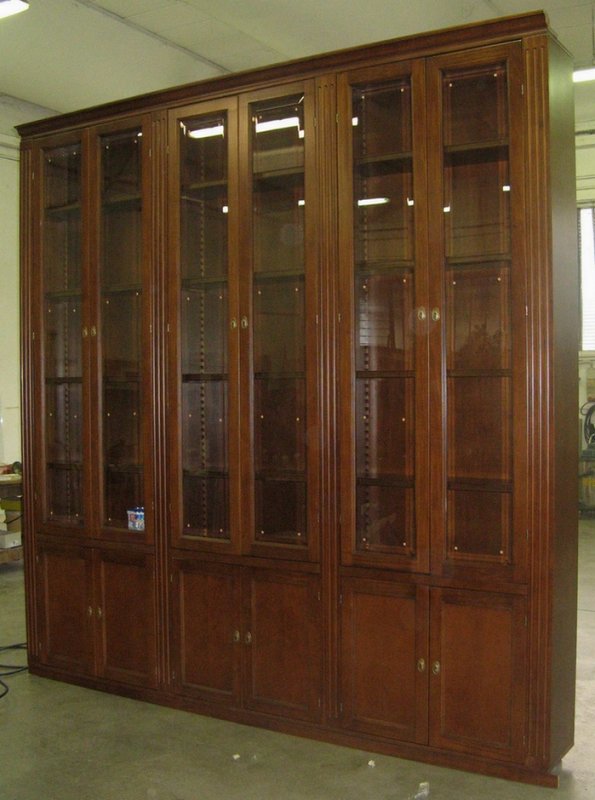 Libreria con sei ante in legno e sei ante in vetro